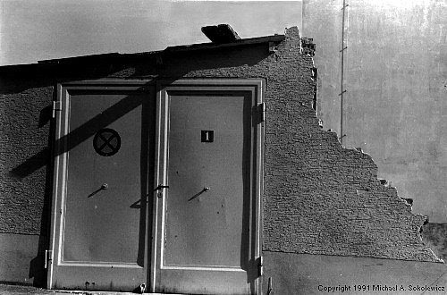 This is a picture of two doors which seem to lead to nowhere. I liked