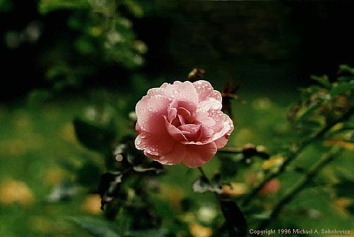 I woke up early when I was visiting a German friend in Stuttgart, and saw this dew-covered rose.